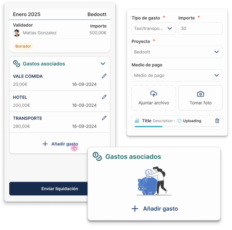 ¿Cansado de notas de gastos manuales, recibos perdidos y procesos de aprobación lentos? Bedoott Gastos digitaliza y automatiza todo el ciclo. Tus empleados registran gastos fácilmente (incluso desde el móvil), las políticas se aplican automáticamente y los reembolsos se agilizan. ¡Cumple la normativa fiscal (Homologado AEAT) y recupera el control!