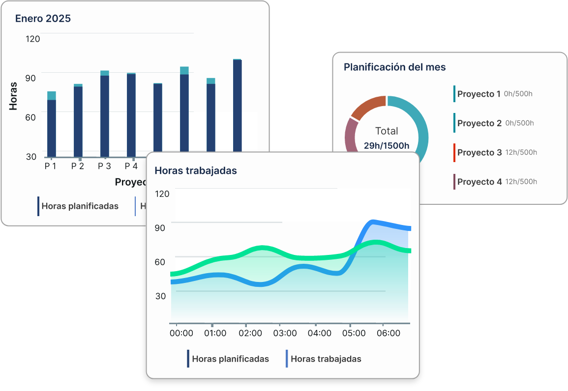 Genera informes de avance, rendimiento, productividad y costes para tomar decisiones basadas en datos.