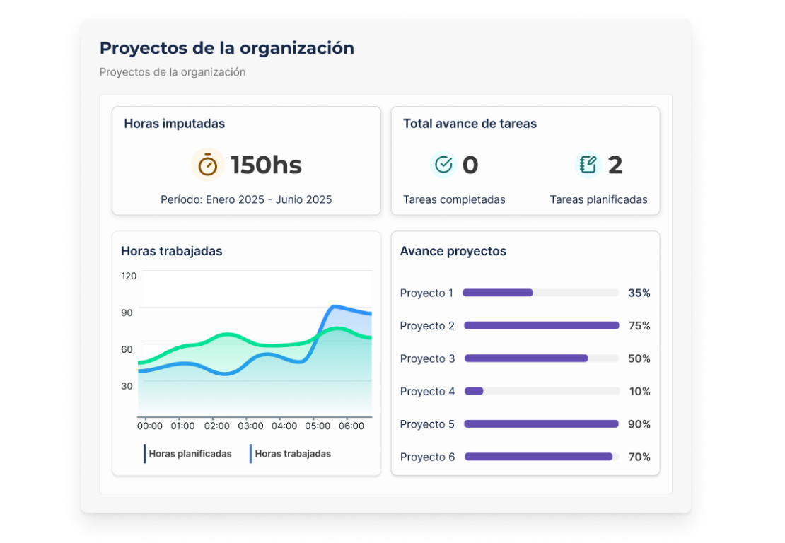 Asigna tareas según disponibilidad y competencias, visualiza cargas de trabajo y optimiza el uso del talento.