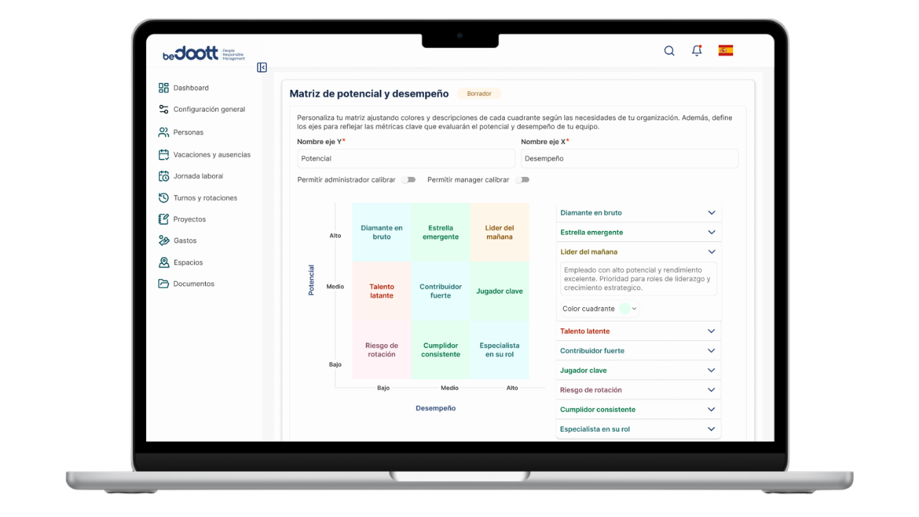 ¿Sabes cuáles son las habilidades clave de tu equipo y cómo potenciarlas? Bedoott te ayuda a definir modelos de competencias, evaluar el desempeño y el potencial (con autoevaluación, 360º y matriz de talento), y crear planes de desarrollo individualizados (PDI) que realmente impulsen el crecimiento alineado con tus objetivos.