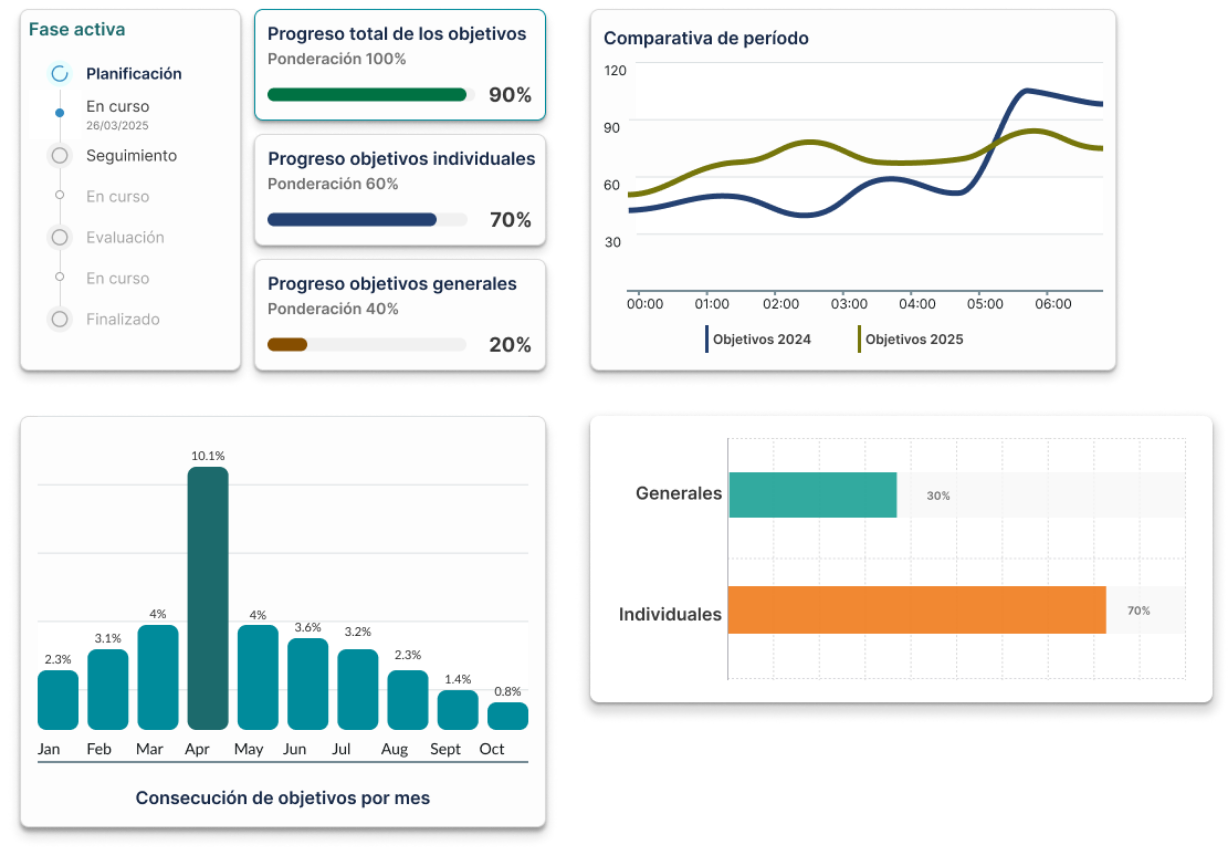 Celebra los éxitos individuales y de equipo, vinculando opcionalmente los resultados a sistemas de recompensa o retribución variable.