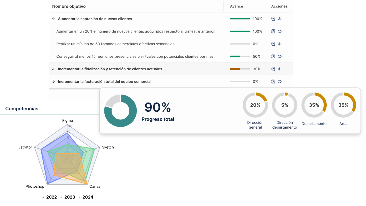 Visualiza el estado de las competencias, identifica tendencias y toma decisiones informadas sobre el desarrollo del talento.